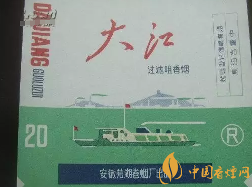 2、大江:70年代,大江香煙的零售價是0.36元每包,需要煙票一張或華僑券一張。據說該煙香味撲鼻,且又氣息平和不嗆嗓子。隨著物價上漲,1984年之后,大江香煙的零售價也調整到0.50元每包。