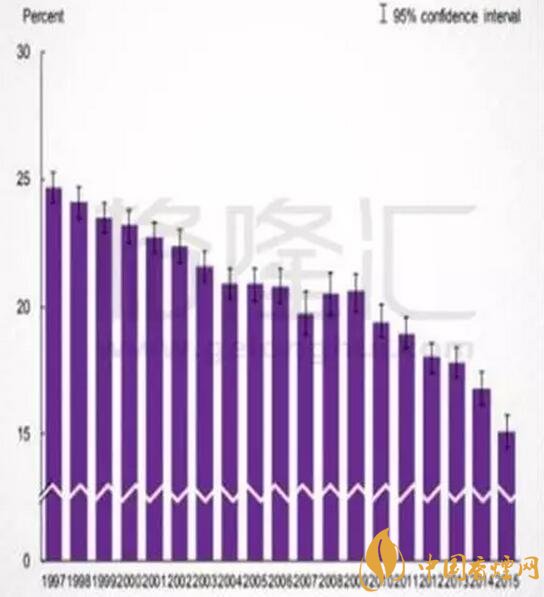 但是菲利普莫里斯國際和奧馳亞近年來業績有所下滑,主要受到全球控煙活動、卷煙提稅順價、部分地方控煙過激等多重壓力的影響,導致全球煙草市場呈現不同程度的下降趨勢。除了全球范圍的控煙運動以外,隨著人們收入水平的不斷提高,人們對健康的意識越來越強,傳統卷煙銷量將不斷下滑。在1990年至2017年期間,全球吸煙率從29.4%下降到了15.3%。以美國為例,美國疾病控制與預防中心的統計數據顯示,美國成年人的吸煙率從2000年的23.2%下降到2016年的15.2%。