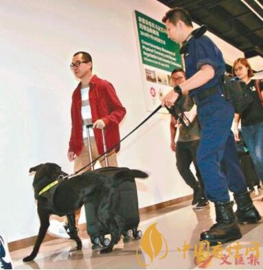 資料圖:香港海關使用拉布拉多鈔票搜查犬開展工作。圖片來源:香港《文匯報》 記者 彭子文/攝