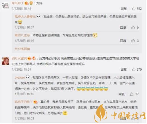 網友@四月水蜜桃說:“我覺得必須取消,說乘客在公共區域吸煙就行,是沒有坐過節假日的綠皮火車吧,過道上擠的都是人,抽煙的根本不管你,直接在你面前抽。”