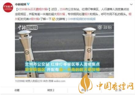蘭州街頭吸煙區現巨無霸煙灰桶 很人性化
