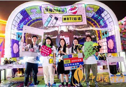 魔笛MOTI草莓味道體驗館,作為音樂現場專供粉絲休憩的小吧,距離主舞臺直線距離不到10米,由MOTI設計師精心設計的M門洞搭建館,與現場繽紛潮酷的音樂氛圍完美融合。藍光閃爍的展架上,7款不同顏色的MOTI和5種不同口味的MOJO繽紛陳列,吸引無數現場樂迷前來體驗。現場還有超Nice的MOTI小哥哥小姐姐給你專業的推薦。