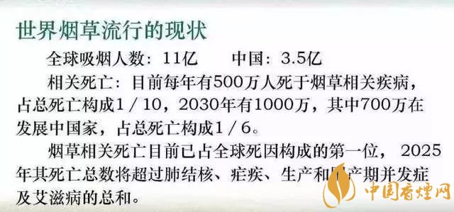 報告指出煙草消費在中國不僅造成大量人口過早死亡,從長遠來看也將造成無法承受的經濟代價:吸煙有關的疾病本世紀內在中國將一共造成2億人死亡。