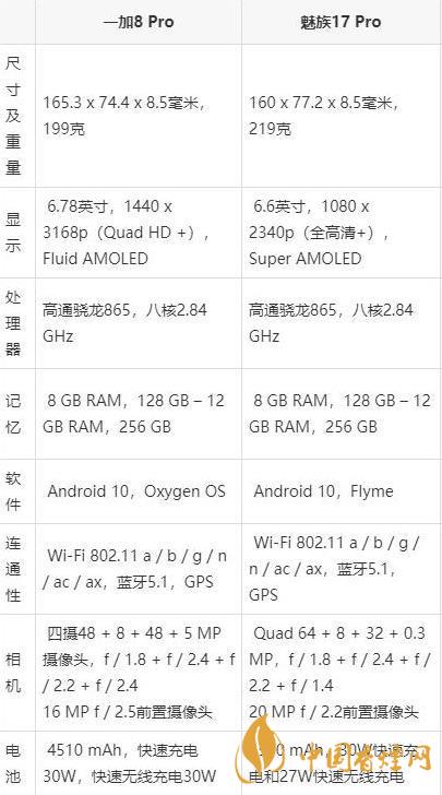 魅族17Pro和一加8Pro哪個好 兩款手機參數對比