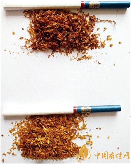 煙絲:真品卷煙的煙絲由葉絲組成,煙絲切絲均勻,光澤油潤性好,碎末少,顏色為檸檬黃;假冒卷煙的煙絲由碎梗、碎絲組成,工藝粗糙,煙絲寬度不均勻、多為碎末,經(jīng)硫磺熏制后呈黃白色。由于南京炫赫門煙支細(xì)長、煙嘴微甜,所以部分煙民將其視作女煙。
