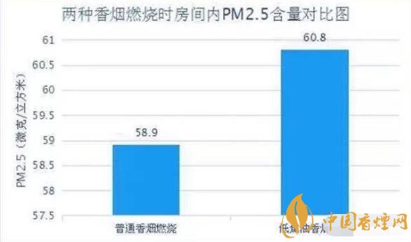 實驗結果表明細支煙與粗煙危害對比,粗桿煙燃燒后,室內PM2.5含量為58.9(微克/立方米),細桿煙燃燒后,室內PM2.5含量為60.8(微克/立方米),均比點燃香煙之前有明顯提升。而且,細桿煙所釋放的煙草煙霧濃度,略高于粗桿香煙。也就是說,號稱“低焦油香煙”的細桿煙,燃燒后所釋放的有害物質不低于粗桿香煙,甚至有些數據還會略高一些。#p#副標題#e#