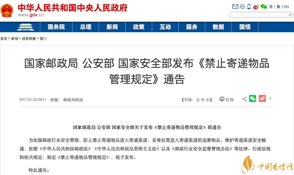 網購香煙假貨泛濫,快遞售煙卻屢禁不止,各種假煙通過快遞流通到全國各地,擾亂了市場,害了多少煙民!喜聞樂見的是,這種令人痛心情況在接下來的日子里可能不會再發(fā)生。因為國家最近出了一個新規(guī)!2018香煙郵寄的新規(guī)新規(guī)明確規(guī)定:快遞香煙不能超過兩條
