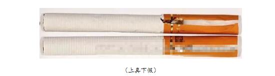 真煙煙支過濾嘴長度為24mm;假煙煙支過濾嘴較短長度約為18mm,與真品煙支存在明顯差異。