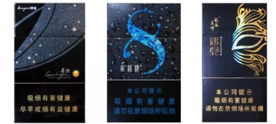 國際大牌里面黑色包裝幾乎占了60%,再說卷煙,近兩年黑色包裝的煙越來越多了,比如貴煙(跨越)中南海(典8)黃鶴樓(硬8度)七匹狼(硬鋒芒)、金橋(冰爆)、大青山(狼圖騰)、龍鳳呈祥(遇見)等。經典款式永遠都是黑色調,這是因為黑色給人一種高水準、高品質的高級感覺。2018卷煙流行色黑色個性時尚顏值高,百搭時尚款。
