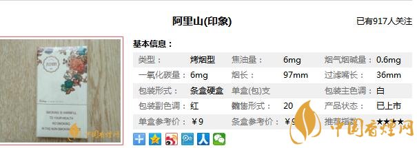 阿里山香煙參數信息