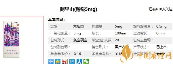 阿里山白魔鏡香煙參數信息
