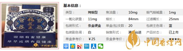 以上便是由香煙網小編為大家介紹的關于梅花王藍硬香煙價格及圖片 一款非常難得的臺灣烤煙的相關信息,想要了解更多有關內容請點擊:白盒臺灣金鹿香煙多少錢一包 新版白盒臺灣金鹿香煙價格10元/包
