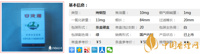 以上便是由香煙網小編為大家介紹的關于白沙硬多少錢一包 白沙硬香煙價格及參數的相關信息,想要了解更多有關內容請點擊:白沙焦油量低的煙有哪些 白沙煙焦油量排行(7款)