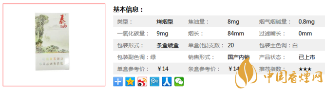 三、泰山青秀香煙參數