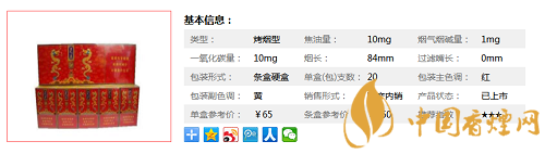 類型 :烤煙型 焦油量 :10mg 煙氣煙堿量 :1mg 一氧化碳量 :10mg