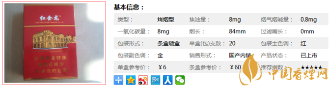 | 類(lèi)型 :烤煙型 | 焦油量 :8mg | 煙氣煙堿量 :0.8mg | 一氧化碳量 :8mg |