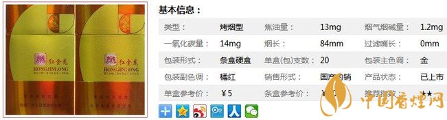 三、紅金龍天方香煙參數