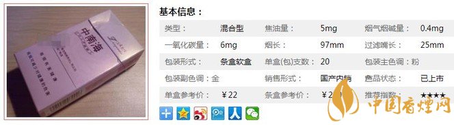 以上便是由香煙網小編為大家介紹的關于中南海女士香煙價格多少 中南海浪漫風情為您推薦!的相關信息,想要了解更多有關內容請點擊:焦油量最低的煙排名(7款) 出口中南海香煙焦油量僅為1mg