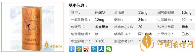 類型 :烤煙型 焦油量 :11mg 煙氣煙堿量 :1.2mg 一氧化碳量 :12mg
