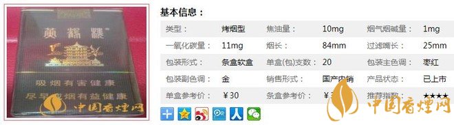 類型 :烤煙型 焦油量 :10mg 煙氣煙堿量 :1mg 一氧化碳量 :11mg