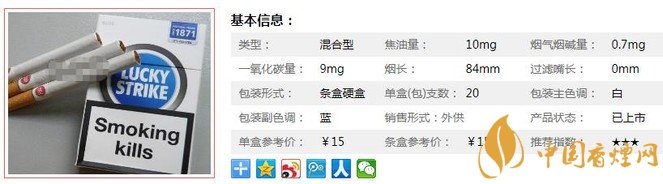 一些非主流版本的好彩香煙,包裝設計方面的視覺感,絕對要比其口感和味道方面,更能吸引煙民一些。這款好彩藍,就是屬于包裝設計遠優(yōu)于口感味道的一款。經香煙網小編市場調查好彩藍售價為15元/包。
