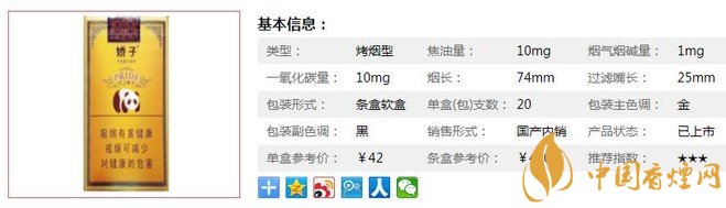 類型 :烤煙型 焦油量 :10mg 煙氣煙堿量 :1mg 一氧化碳量 :10mg