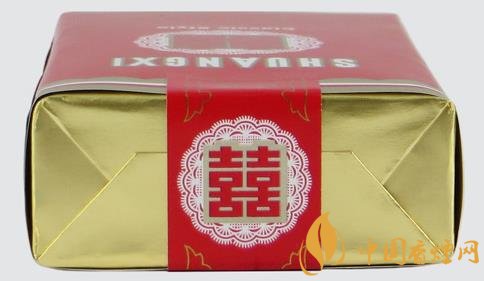 正面剪紙圖花潔白,“喜喜”則浮貼其上,嵌以金邊,喜氣洋洋。上為中文商標“雙喜牌香煙”,下有“經典雙喜”字樣,金線之下為大警語。煙支入眼,樸素清秀,豎紋煙紙上印有紅色“喜喜”,金葉兩側環繞,下有“01”字樣。濾嘴稍短,下鑲金圈,整體感覺有種典雅之秀氣。