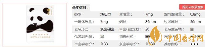 | 類型 :烤煙型 | 焦油量 :7mg | 煙氣煙堿量 :0.8mg | 一氧化碳量 :7mg |