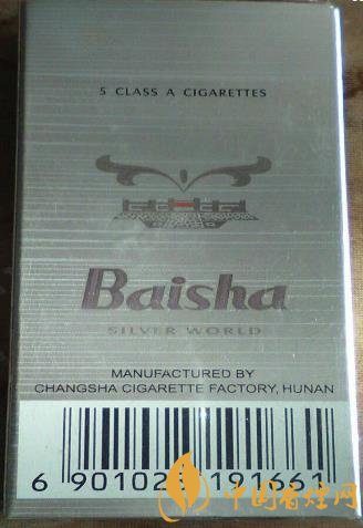其包裝采用銀灰包主調,表面經過特殊處理,圖案簡潔,印刷精美。白沙銀世界使您感覺到一種醇和、飄逸、自由自在的飛翔。銀色世界、浪漫感情、時尚格調,盡在“白沙銀世界”。包裝上很有機器的感覺,應該比較難以造假,煙支上全白色煙支,當然煙嘴的顏色稍微灰白點,在當時已經很時尚了!
