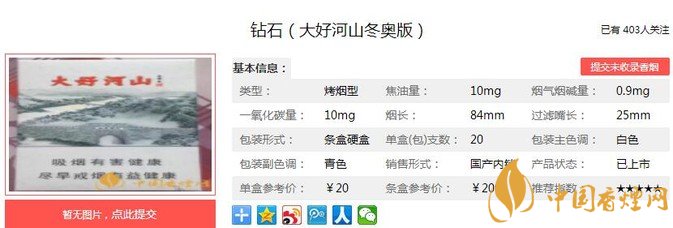 三、鉆石大好河山冬奧版香煙參數(shù)