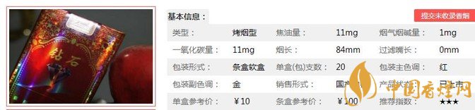 三、鉆石軟紅如意香煙參數