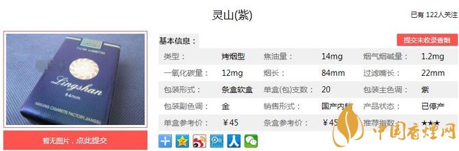 靈山紫香煙通過(guò)精心的調(diào)香技術(shù)的研究試驗(yàn),其內(nèi)在品質(zhì)以突出的“淡淡蓮花香韻”為主體風(fēng)格,賦予清新、優(yōu)雅、柔和、細(xì)膩的香氣,口感、余味干凈、舒適,真正滿足高層次消費(fèi)者的品位追求。經(jīng)香煙網(wǎng)小編市場(chǎng)調(diào)查靈山紫售價(jià)為45元/包。