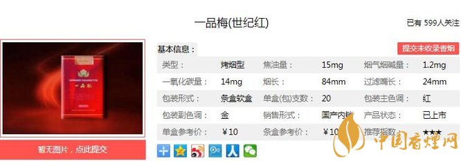 三、一品梅世紀紅香煙參數