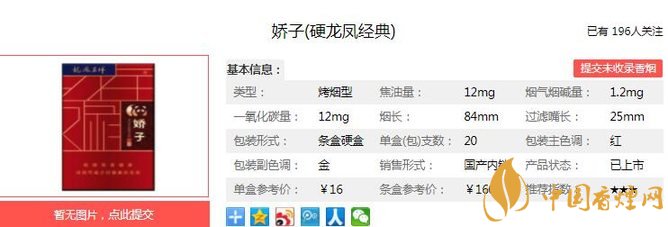 以上便是由香煙網小編為大家介紹的關于嬌子硬龍鳳經典價格及參數 嬌子硬龍鳳經典獨家口感分析的相關信息,想要了解更多有關內容請點擊:嬌子軟龍鳳呈祥售價10元一包 煙氣細膩口感舒適
