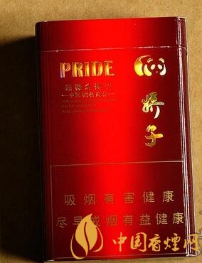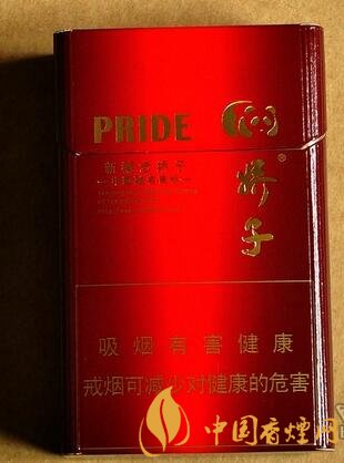 從上到下看,最上面是字母“PRIDE”,右邊是嬌子的LOGO熊貓形象。下面是漢字:“新概念嬌子”,“—中國馳名商標—”等香煙基本信息,這幾行信息的右邊是“嬌子”字樣。底下警語寫著:吸煙有害健康 戒煙可減少對健康的危害,包裝背面與正面基本相似。包裝整體十分簡單新穎。