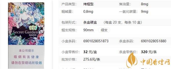 三、云煙(神秘花園)香煙參數