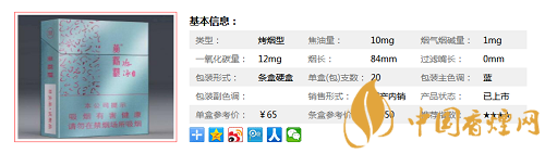 | 類(lèi)型 :烤煙型 | 焦油量 :10mg | 煙氣煙堿量 :1mg | 一氧化碳量 :12mg |