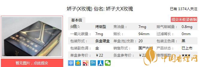 嬌子X玫瑰多少錢一包 嬌子X玫瑰口感及參數介紹