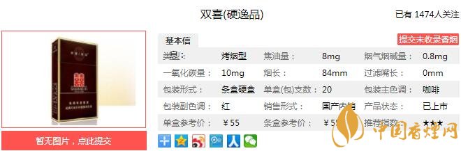 以上便是由香煙網小編為大家介紹的關于雙喜硬逸品多少錢一包 雙喜硬逸品口感及參數介紹的相關信息,想要了解更多有關內容請點擊:黃金葉硬黃金多少錢一盒 黃金葉硬黃金口感醇香細膩