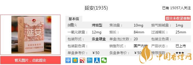 延安1935多少錢一包 延安1935密碼煙口感及參數介紹