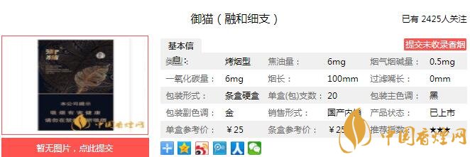 一、御貓融和細支香煙價格