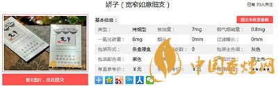 類型 :烤煙型 焦油量 :7mg 煙氣煙堿量 :0.7mg 一氧化碳量 :6mg
