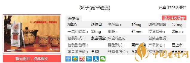 三、嬌子寬窄逍遙香煙參數