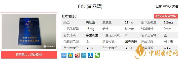 白沙尚品藍多少錢一包 白沙尚品藍口感及參數介紹