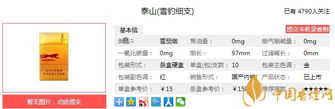 三、泰山雪豹細支香煙參數