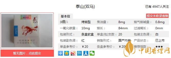 三、泰山(雙馬)香煙參數(shù)