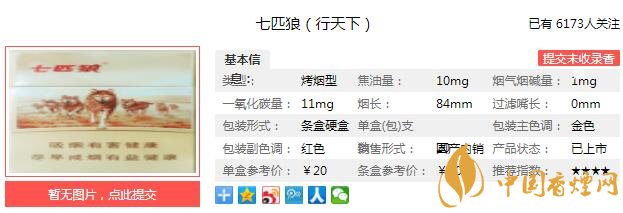七匹狼行天下煙支長(zhǎng)84mm,過(guò)濾嘴長(zhǎng)34mm,卷紙采用橫紋結(jié)構(gòu),以手捏之,柔軟而充滿彈性。以鼻嗅之,煙草本香氣息不濃,夾雜著果木之香的氣味,充斥著鼻翼。下面我們一起來(lái)看七匹狼行天下的參數(shù)信息:焦油量:10mg 煙堿量:1.0mg 一氧化碳量:11mg