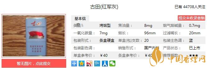 一、古田紅軍灰香煙價格