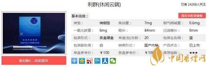 利群休閑系第一款細支高價煙僅僅是官方報價就達到了100元一包!