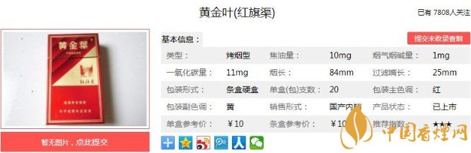 類型 :烤煙型 焦油量 :10mg 煙氣煙堿量 :0.8mg 一氧化碳量 :10mg